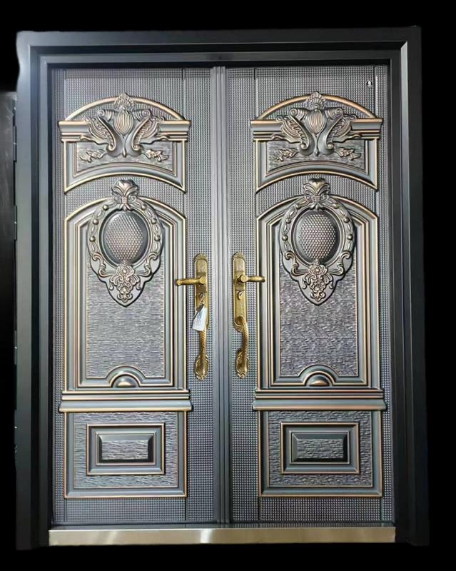 1. This door is made of steel in wooden look and design. If you knock and touch it will give you feel jist like wood but its actually in steel, Which gives you 100% protection to your Home.